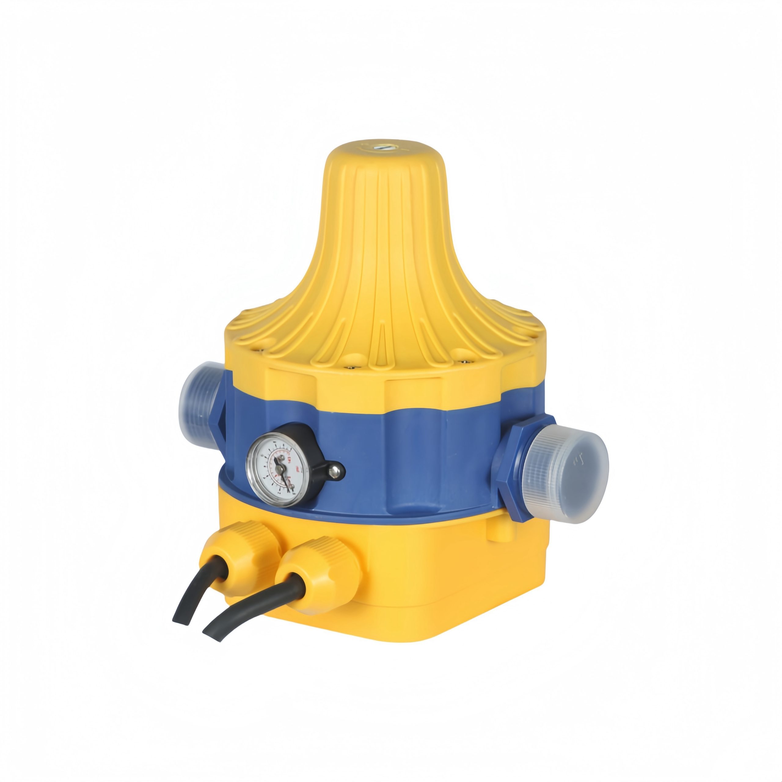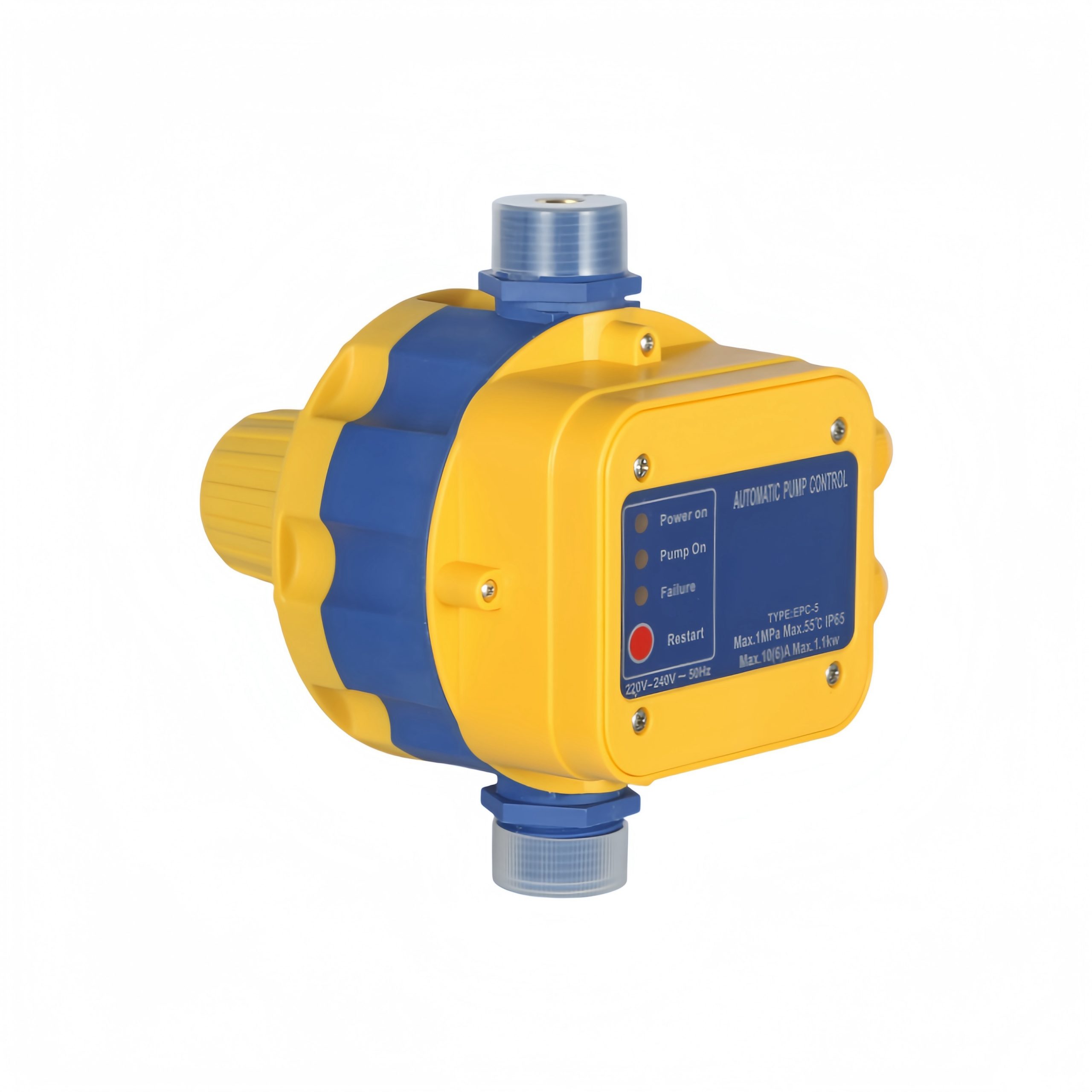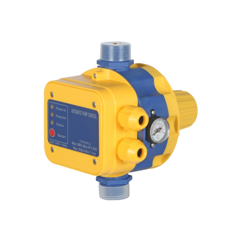 MPC-5 model automatic pump control, a device which assembled on the water pump (recommended single phase pump up to 1.1kw (1.5HP) with a max current of 10A). The working principle of it adopts dual control of Pressure and flow, auto start and stop based on water demands. 180º pump-pipe connection.